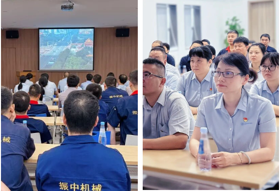 2025年9月3日,纪念中国人民抗日战争暨世界反法西斯战争胜利80周年阅兵式在北京天安门隆重举行。振中党总支召集全体党员与积极分子在会议室观看阅兵仪式,共同感受国家强大与民族复兴的辉煌时刻。